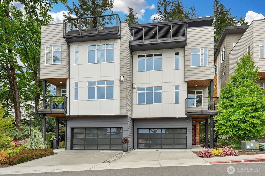 VIEW, VIEW, VIEW! Originally model unit. Luxury 4 level townhome. Stunning views of DT Seattle, Sunset & Olympic Mountains from its top floor expansive large roof top deck! In the heart of Bellevue's Factoria neighborhood, Newport Terraces is one block from T-Mobile headquarters, Newport High School, 405, I-90 & DT Bellevue! Featuring designer finishes, this home has SS appliances, tile flooring, quartz counters & luxurious hardwoods. Security system inside & security cameras outside. Walkable to shopping, movies, & restaurants, this home has it all! Backs to greenbelt.