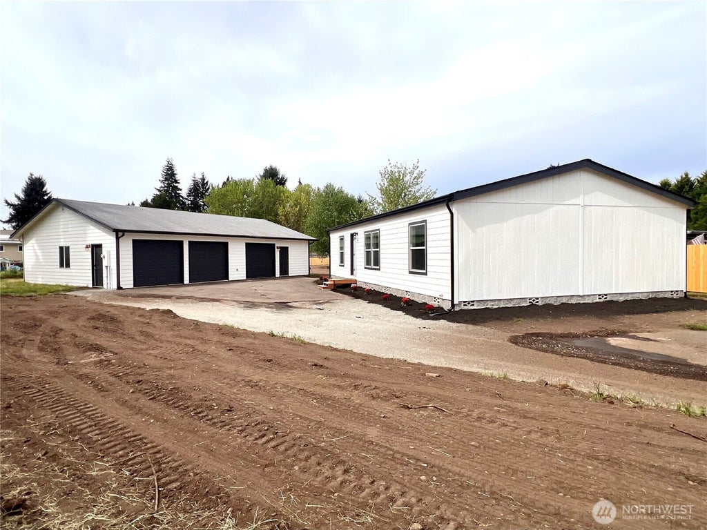 Welcome to this brand-new 2025 Energy Star Certified manufactured home in the desirable Nisqually Pines community! This 3 bed, 2 bath home offers 1,296 sq ft of modern living with an open-concept kitchen, dining space, and walk-in closets. Situated on a generous 16,000 sq ft lot, you'll enjoy expansive open yard space—perfect for outdoor living. The property also features a 1,500 sq ft garage with three doors, divided into two separate spaces ideal for a shop, storage, or home business. Community perks include parks and a clubhouse. A must-see opportunity!