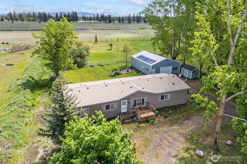 Secluded setting close to town on just under an acre. Property offers 3 nice size bed rooms, 2 with private bathroom, a living room and family room, formal eating area with an open kitchen. Friendly access with ramp to house and walk in shower. Lots of windows to ensure viewing of the beautiful sunsets and sunrises in the area. Large deck off side entrance. Fenced in yard offers a garden area, fruit trees and mature landscaping great for comfortable shade. The large 30x40 shop offers an enclosed work area or office. Complete package with 30 installed solar panels. Convenient location just minutes to the Spokane International Airport, Spokane and all amenities of Medical Lake, Cheney or Airway Heights.