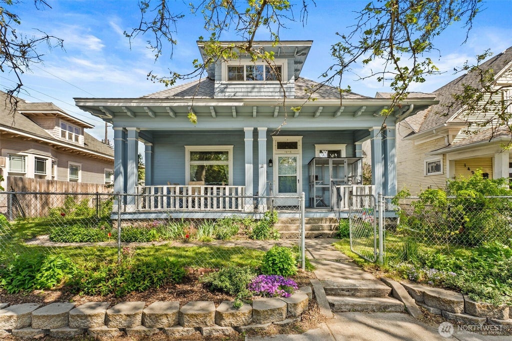 Discover the ideal blend of classic charm and modern updates in this beautifully renovated Craftsman-style home featuring wood floors, high ceilings, and a convenient layout. The main level offers two bedrooms and a full bath, while upstairs includes two more rooms, another full bath, including a primary suite with a sitting area prepped for a potential kitchenette. Recent upgrades include new vinyl windows, gas furnace, central A/C, hot water heater, detached garage roof, garage door, rain gutters with leaf guards, and new cedar and chain-link fencing. Fully fenced yard, reverse osmosis system, and all appliances included—move-in ready!