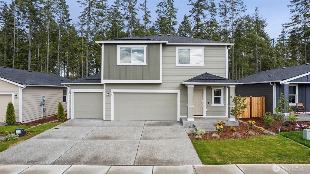 Did you miss out on a new home in Olympic Ridge? This move-in ready Lennar home is less than a year old & has been meticulously maintained inside & out! Enjoy close proximity to the Salmon Center, Hood Canal trails & access to the Olympic Peninsula. Featuring 2439sf w/4bds, 2.25ba & 3 car garage, the kitchen has white cabinets & SS appls incl gas range. LVP flooring w/ cork underlayment (sound dampening) flows throughout the main floor. Upstairs you will find a spacious loft, 3 addtl bdrms & Primary suite w/ attached bath w/ walk-in shower & large WIC. Upper baths have upgraded LVP with cork underlayment too. Kitchen appliances stay, upgraded ceiling fans, heat pump (A/C) for year round comfort & spacious partially fenced backyard.