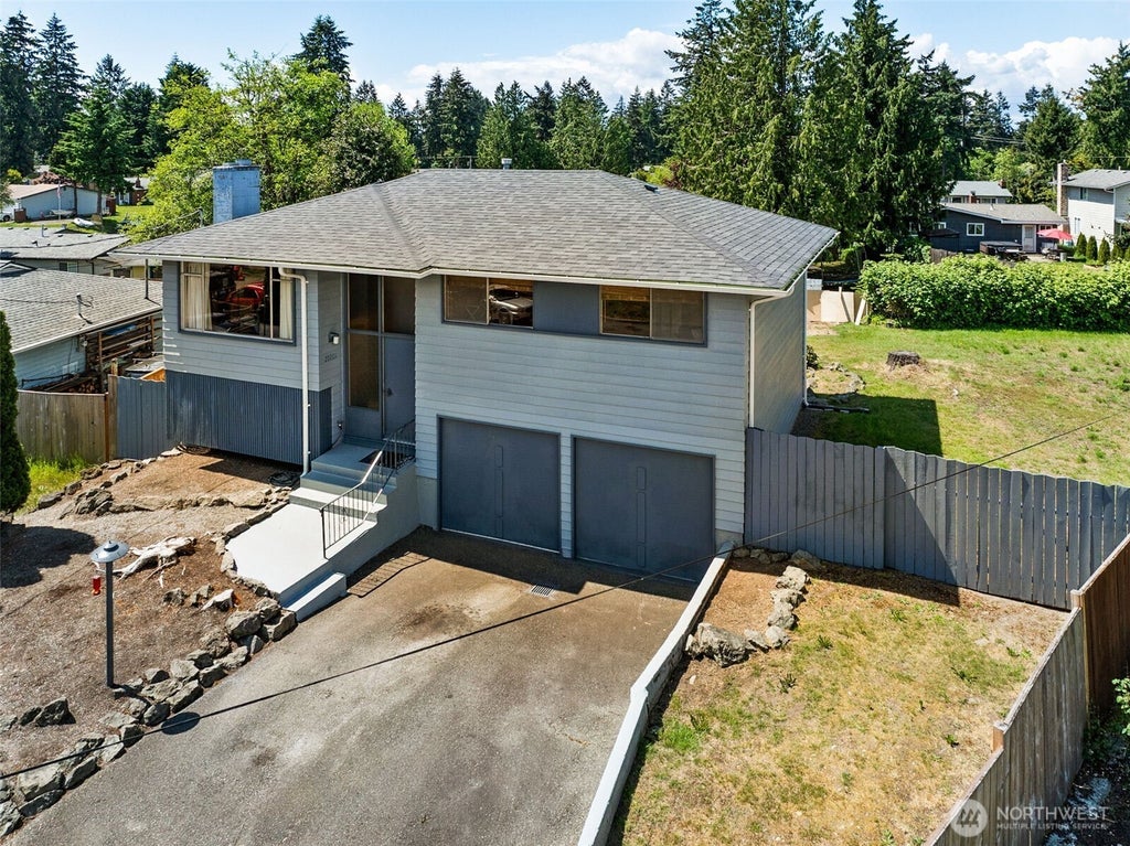 These opportunities are few and far between. One family home since new in 1964 with original finishes. Bring your skills and update to your liking and build sweat equity. Original oak hardwood floors protected by carpets. The split-level design offers possible separate living spaces on each level. 3 bedrooms and full bath up. Living room with wood fireplace. Kitchen and dining lead through sliding glass door to deck and fenced backyard. Downstairs-large 2 car garage, unfinished rec. room with fireplace and access to backyard, plumbed utility and 3/4 bath, 4th bed rm. Roof 3 years old and exterior recently painted. Built solid. Electrical system grounded. Near bus route, Thomas Jefferson High, and 5 min to I-5. See this equity builder.
