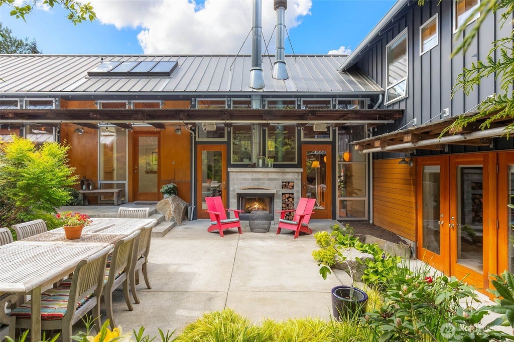 Exceptional 4BD/4BA modern home on coveted Norway Hill, designed by award-winning Rhodes Architecture + Light. Open floor concept, light-filled interiors feature radiant concrete floors, soaring ceilings, and expansive windows. Remodeled chef’s kitchen with quartz counters, SS appliances, and 6-burner gas cooktop. Main-level primary suite with spa-like en-suite. Seamless indoor-outdoor living includes heated pool and hot-tub with safety cover, cascading fountain, sunlit courtyard, patios, lush gardens, and outdoor wood fireplace. Separate studio with full bath for guest space or home office. 3-car garage. Private setting on acreage with mature landscaping. Northshore Schools. Easy access to I-405. A rare architectural gem and private oasis.
