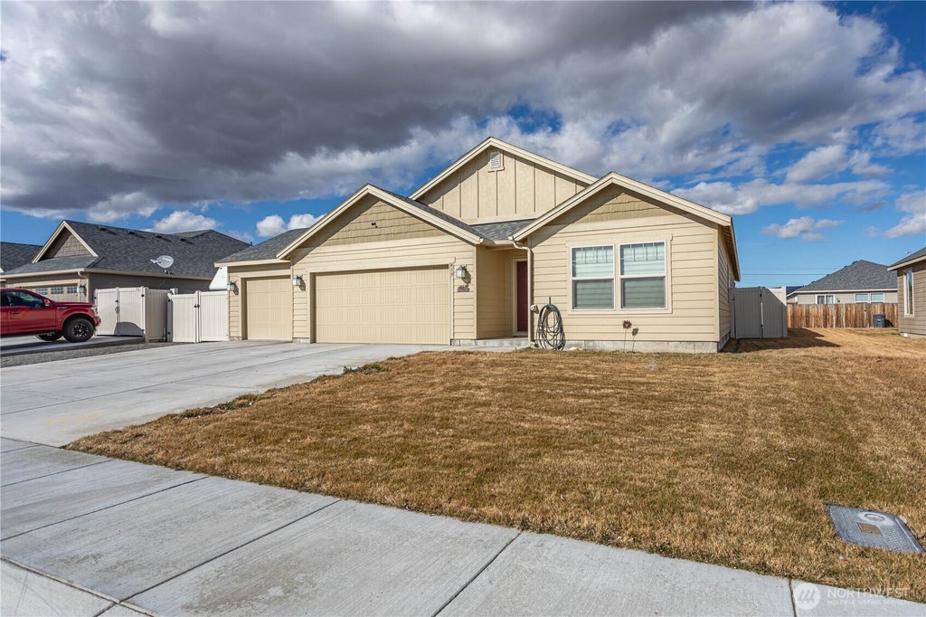 NEW FLOORING and CARPET being Installed! With 1,549 sq. ft. of living space, this beautiful property features an open-concept layout. The kitchen boasts stainless steel appliances, soft-closing cabinets, and a spacious island, while the primary suite offers a walk-in closet and bath. The additional bath features a walk-in jetted tub. Step outside to your private, fully fenced backyard oasis, complete with a covered patio, irrigation, and ample space for outdoor dining and lounging. The three-car garage has 627 sq. ft., along with side RV parking. Custom blinds throughout and a water filter/softener is also included. Conveniently located near Microsoft, schools, shopping, and dining, this home is a true gem!