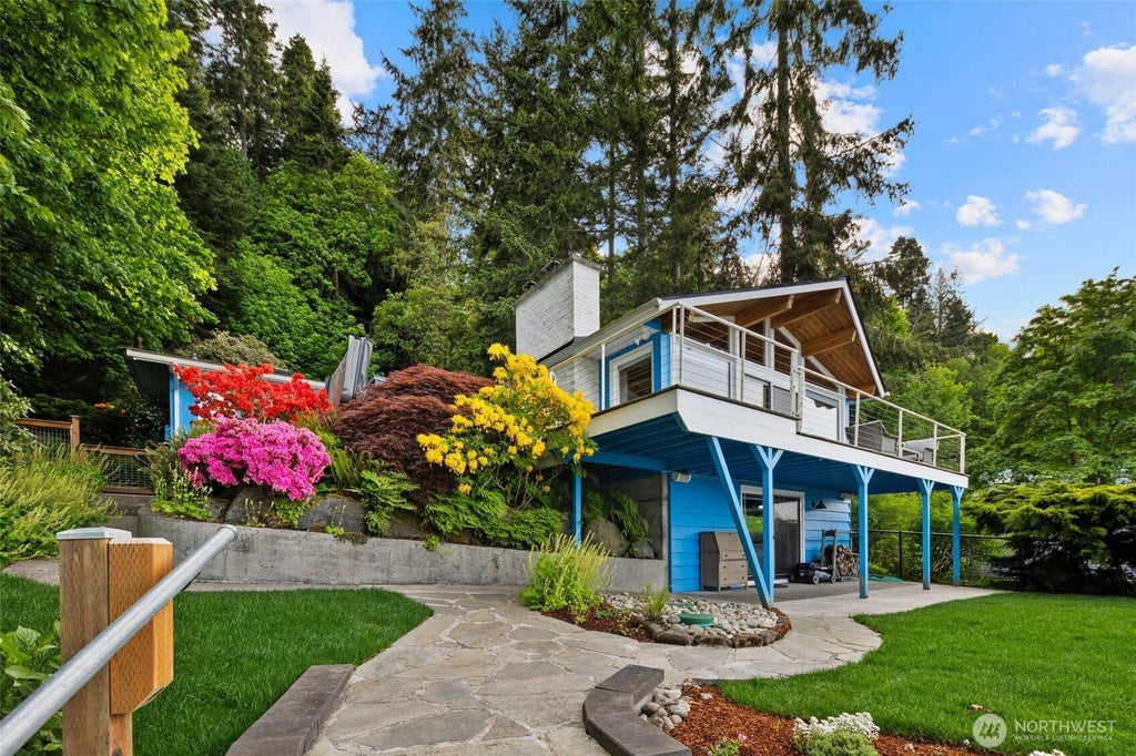 Stunning Waterfront Home on Utsalady Bay's Coveted Sandy Beaches with Bulkhead & Boathouse Below! This Premier Home has been thoroughly updated inside and out. Giant VIEW kitchen w/ quartz slabs, high-end appliances and cabinets. Open-beam fireside family room. Main-floor primary view suite, office space with high-speed broadband. Lower Theater/Bonus room, + large guest bedrooms/bathrooms. Detached garage + loads guest paved guest parking. Entertaining-sized deck w/ hot tub to soak in the solitude + views. Landscaped and fenced yard leads down to your concrete bulkhead/shoreline deck w/ boat davit, mooring buoy & storage shed. Unique covered boat parking, ready for crabbing, paddling, and beachcombing. Your Patience Paid-Off...Welcome Home!