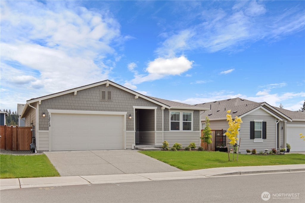 Welcome to this beautifully designed single-story home in the peaceful Falling Water II neighborhood. This gorgeous rambler offers 3 spacious bedrooms, a versatile den, & 2 full bathrooms, all thoughtfully laid out for comfortable living. The heart of the home features an open-concept great room with a cozy gas fireplace, seamlessly connecting to a modern kitchen adorned with quartz countertops and stainless steel appliances. Spacious Primary Suite with large walk-in closet and a luxurious 5-piece Bath. Step outside to a covered patio, perfect for year-round entertaining & fully fenced backyard. Hybrid electric heat pump. Amenities such as parks, trails and pickleball courts nearby! Bonne Lake SD! Welcome to beautiful Bonney Lake!