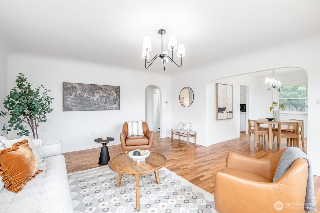 Welcome to this charming, updated Central Tacoma Tudor! Step inside to beautifully refinished Oak and Fir floors, fresh paint inside and out, stylish light fixtures, and a refreshed kitchen—everything move-in ready. Perched above the street, the home is filled with natural light, creating a warm, welcoming vibe. The main floor offers a primary bedroom, full bath, and convenient laundry room, while upstairs features two bedrooms with built-in hallway shelves. Recent upgrades include a new water heater, sump pump, rebuilt chimney, and more. Enjoy the oversized yard, perfect for relaxing or entertaining, plus a deck and detached garage. All this on a quiet street in a super convenient location with easy highway access! What a treasure!