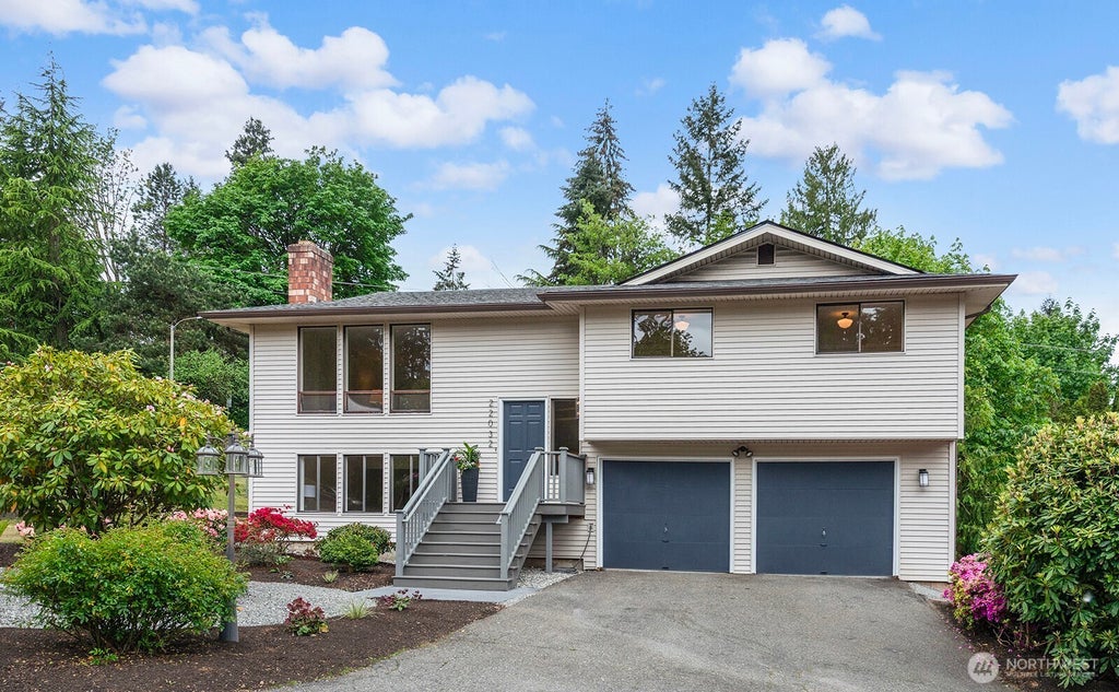Welcome to this stunning, updated home offering a perfect blend of modern style, comfort and convenience. The light-filled open floor plan seamlessly connects the spacious living room w/ fireplace, dining room and updated kitchen w/eating space. The Primary suite features a new 3/4 bath. There are 2 additional bedrooms and a newly updated full bath on the main level. A lower, daylight level has a large family room w/ fireplace, utility room and an oversized 2 car garage. Additional updates include a new furnace, new electrical panel, newer roof, all new appliances, new flooring and more! Great neighborhood, located in the desirable Northshore School District and walking distance to Frank Love Elementary. Prime location!