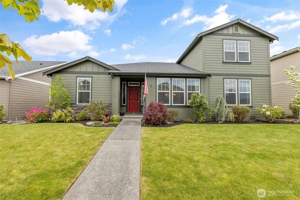 *$5,000 BUYER BONUS AND 1% RATE BUYDOWN FOR 1 YEAR FROM PREFERRED LENDER!* This rare plan with a Mt. Rainier view features 2 bedrooms on the main including the primary w/ attached 5 piece en- suite & walk in closet combining design & function. Wood floors flow through the open kitchen with granite countertops & walk in pantry & continue into the living area featuring custom built ins. Upstairs is a loft perfect for an office or play area & large third bedroom. The low maintenance back area offers a covered patio & gas fireplace. Equipped with A/C, you'll be cool this summer after playing at Big Sky Park just a few steps away. With close proximity to shopping & dining, 40+ miles of trails & 16 parks... the Tehaleh lifestyle is truly special.
