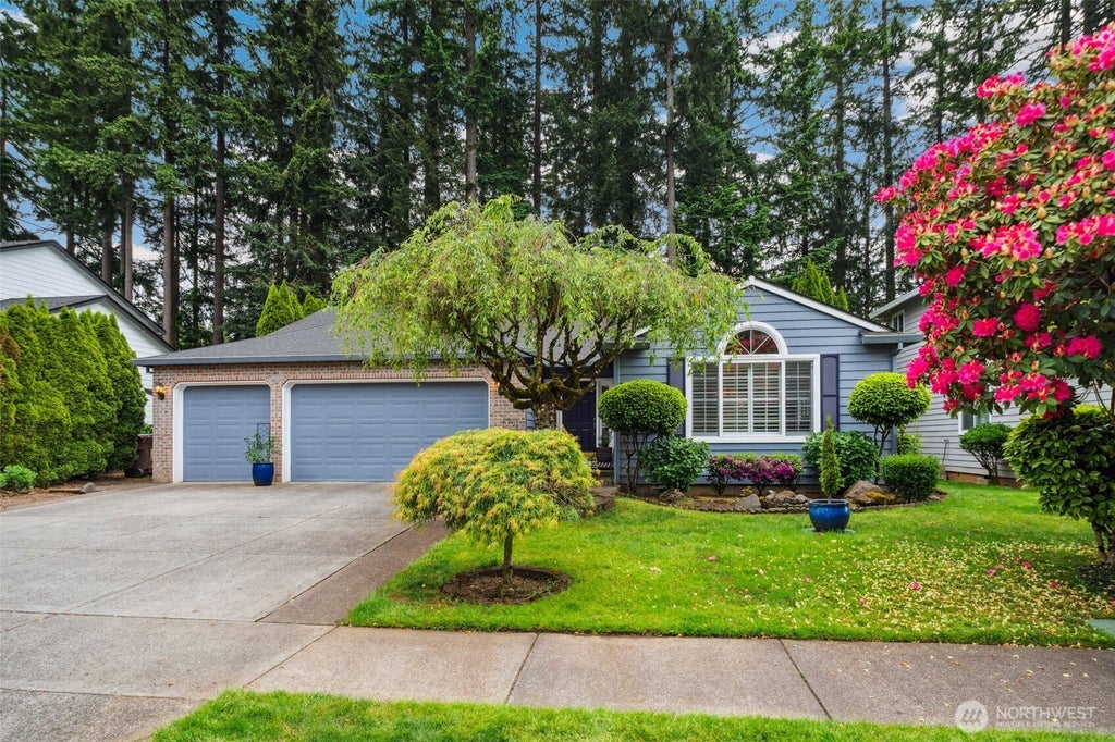 Rare Single-Level Updated Ranch in Lake Pointe! This beautifully updated gem sits on a private, low-maintenance lot that feels like your own park. Enjoy oak hardwood floors in the entry and remodeled kitchen featuring skylights, white cabinetry, slab granite counters, a gas cooktop island, and sleek stainless appliances—all open to the vaulted family room with a cozy gas fireplace and large windows overlooking the serene backyard. Includes formal living and dining rooms, plantation shutters, three bedrooms, two full baths, an interior laundry room, and a spacious three-car garage. Stay comfortable year-round with 95% efficient heating and central AC. Near top-rated schools and parks!
