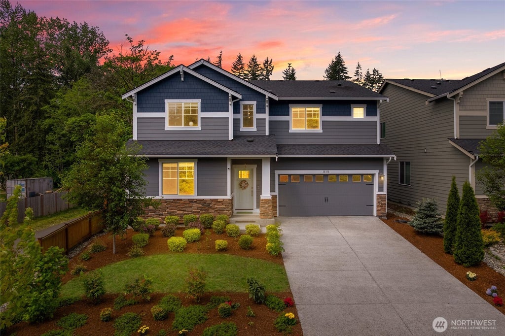 Welcome to Bellflower Woods in Bothell! This stunning East-Facing home boasts a contemporary & expansive open layout w/ plenty of space for relaxing & entertaining! The expansive living room features soaring two-story ceilings & flows seamlessly into the gourmet kitchen w/ large island, SS appliances, walk-in pantry & butler’s pantry. Formal dining room & flexible main-floor bedroom/office space offers versatility for guests or remote work. Upstairs includes a spacious loft, laundry room & 3 bedrooms, including the luxurious primary suite w/ spa-like bath & walk-in closet. Eero WiFi mesh for whole-home connectivity, covered patio, fenced yard w/ artificial turf & just steps to community park. Great location near amenities & commuter routes!