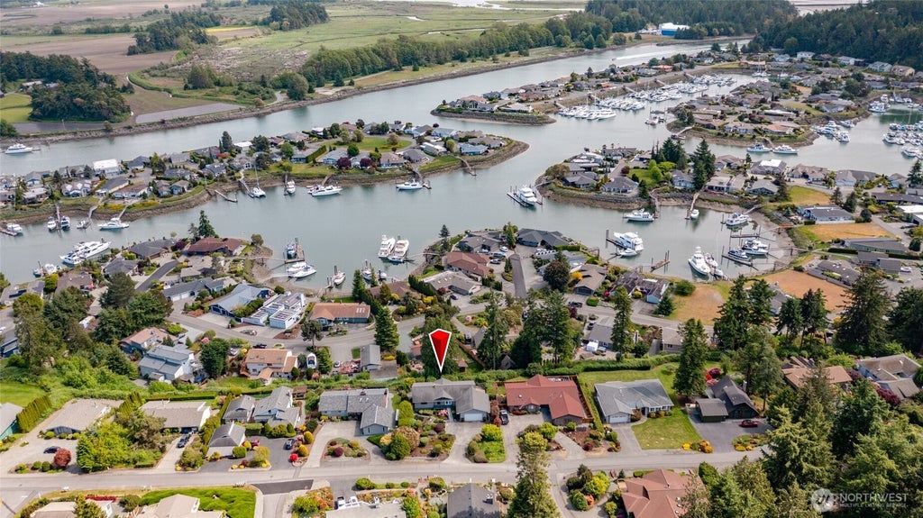 Encapsulate the essence of the Shelter Bay (leased land) community w/this sizeable 2,764 sq.ft. 3 bd/2.5 bth home that features an eclectic flair of the 70's w/a dash of French countryside vibe. Be warmly greeted by a comfortable living room w/ large windows that frame a celebrated classic NW/Shelter Bay view. A radiant, light-drenched kitchen w/island & freshly painted cabinets. Primary bedroom w/ensuite bath, & the Rainbow Bridge waving hello from the NE. Lower level has a family/rec room, 2nd kitchen, office w/built-ins/closet, 2 bedrooms, 3/4 bath, interior storage room. Located minutes from the historic & charming hamlet of La Conner, this home is perfect for a tranquil weekend retreat, multi-generational living or to enjoy year-round.