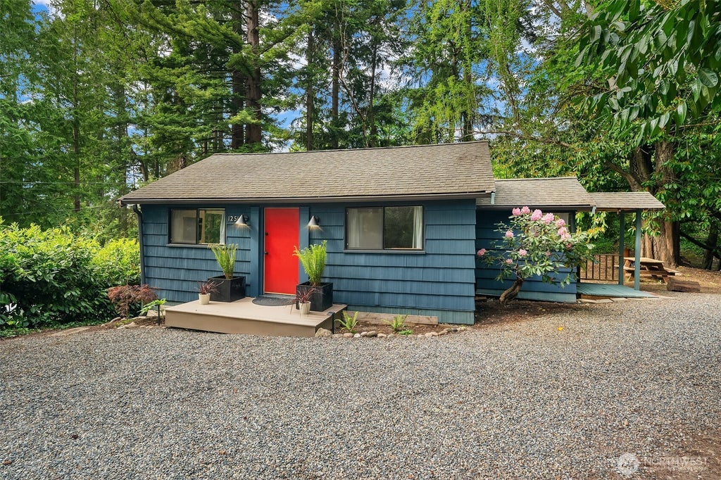 Nestled among madrones, maples, and cedars on over 1/3 of an acre, this storybook 1948 cottage captures the essence of island living. Peek-a-boo views of Colvos Passage filter through picture windows, bringing the outdoors in and bathing the space in natural light. Thoughtfully updated, it features original hardwood flooring, a remodeled bathroom, and a charming vintage-inspired kitchen with a classic-style fridge and new lighting. A new 2-bedroom septic system (2023) offers long-term peace of mind. Located on a quiet dead-end street on Vashon’s famed West Side—just moments from beloved farms, forested trails, and public beaches like Fern Cove —this home is a serene retreat made for simple, joyful living.