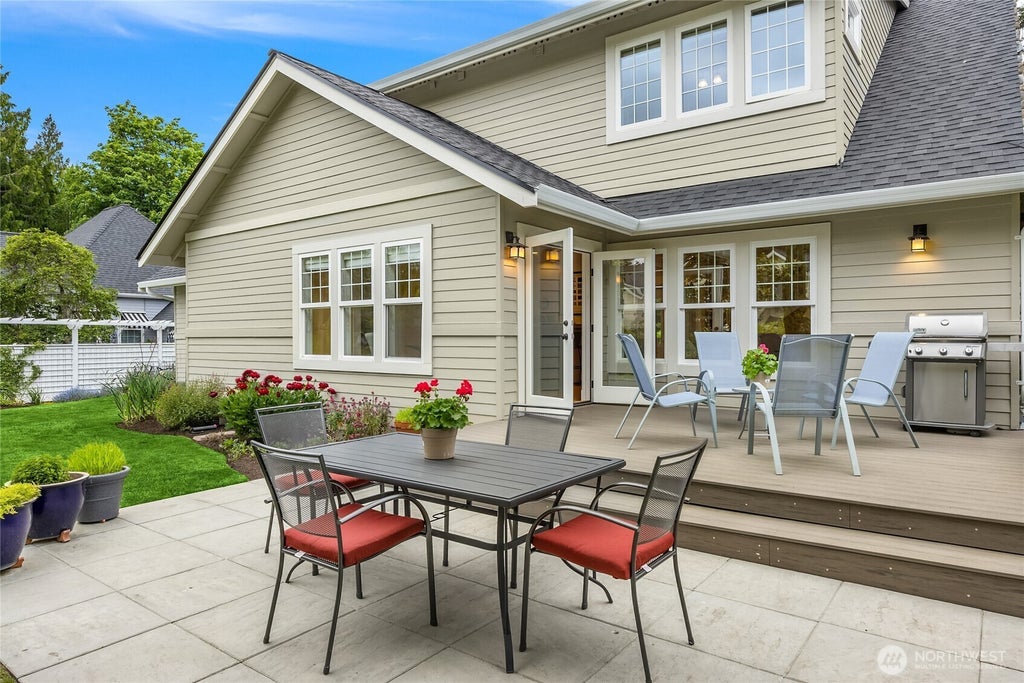 A charmingly delightful Craftsman-style home with a covered porch surrounded by brilliant flower beds & pathways leading to an established, fenced vegetable garden! Just across the street is a protected open space, adjacent walking trails & to the north is a small Tot Lot. You'll find the Wing Point Golf & Country Club to the South and not far beyond - the Seattle Ferry, Winslow shopping, schools, restaurants, theater & entertainment. Features include fine millwork, custom built-ins, maple floors throughout, a river rock fireplace, granite counters, formal & informal dining spaces, glass French doors opening to a spacious deck and stone patio for entertaining. Newer roof & exterior paint. This home speaks "cozy and convenient!"