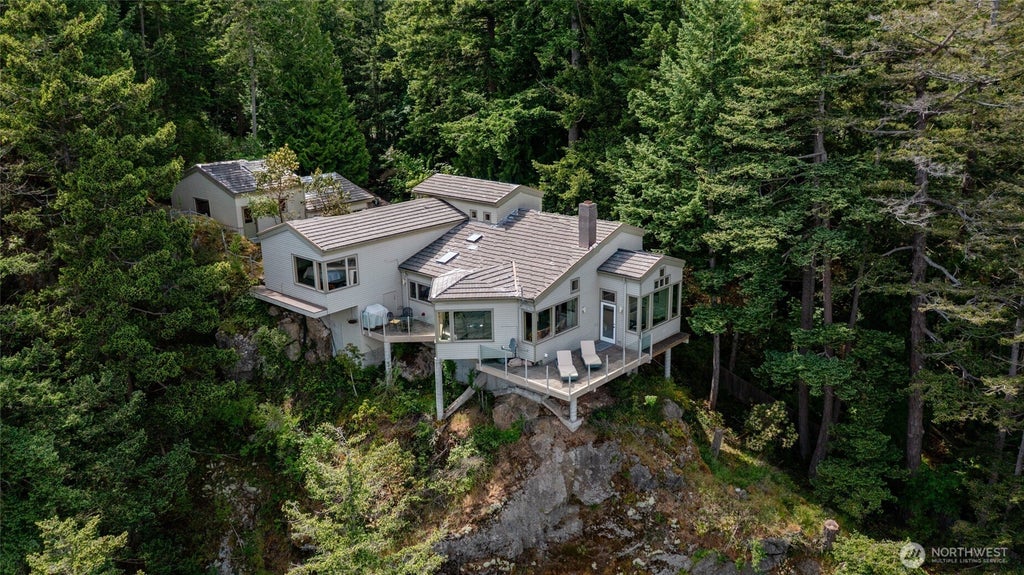 The essence of Big Sur is echoed in La Conner - a classic California cliff house is perched above the Swinomish Channel, on a rare 2.5-acre fee simple (you own it) lot in Eagle’s Nest. This custom home offers sweeping views of Mt. Baker, historic La Conner, and the Skagit River Delta. Watch eagles soar from the light-filled great room or gourmet kitchen with granite counters, custom cabinets, and stainless appliances. Two decks provide amble entertaining areas. Spacious primary suite with private bath and walk-in closet. Art-display TV's, professional landscaping, new furnace, and storage underneath the home. Huge 884 SF garage with ADU, guest room, or shop potential. Enjoy private beach access plus marina, golf, tennis, and pool amenities.