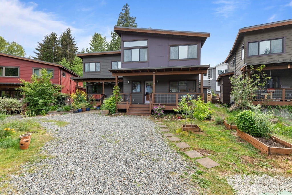 Your perfect sanctuary awaits! Discover tranquil, eco-conscious living in this beautiful townhome within Clearwater Commons—a rare collection of 16 homes on 7 acres with North Creek flowing nearby. This turnkey 4BD/2.5BA retreat offers both privacy and community, surrounded by nature trails and a salmon-spawning stream where wildlife thrives. Completely refreshed with new roof, siding, and carpeting. Home features include vaulted ceilings, hardwired ethernet, custom storage, and front/back porches. Enjoy exclusive community amenities: woodshop, pottery/art studio, radiant sauna, and a community garden. Located in sought-after North Shore School District, this exceptional home perfectly balances community connection with modern conveniences.