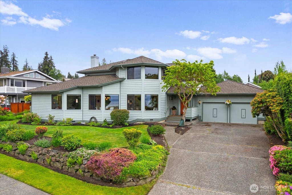 One of the best tree streets in the Edmonds Bowl, this 2 story home offers great views, excellent yard and minutes to all Edmonds has to offer. Light and bright main floor features NW facing windows to capture the views. Open kitchen to dining and living areas. Family room with access to large composite decking and gorgeous flat backyard with alley access. Main floor bedroom and a full bath. Upstairs is a sunroom, primary suite with walk in closet and full bath. 2 more bedrooms, 1 currently set up at an office and a full bath. Oversized garage could fit 4 cars or a large shop, back garage door opens to yard. Tons of storage. Stroll to Edmonds shops, restaurants, galleries, library/community center, beaches, trains and ferries!