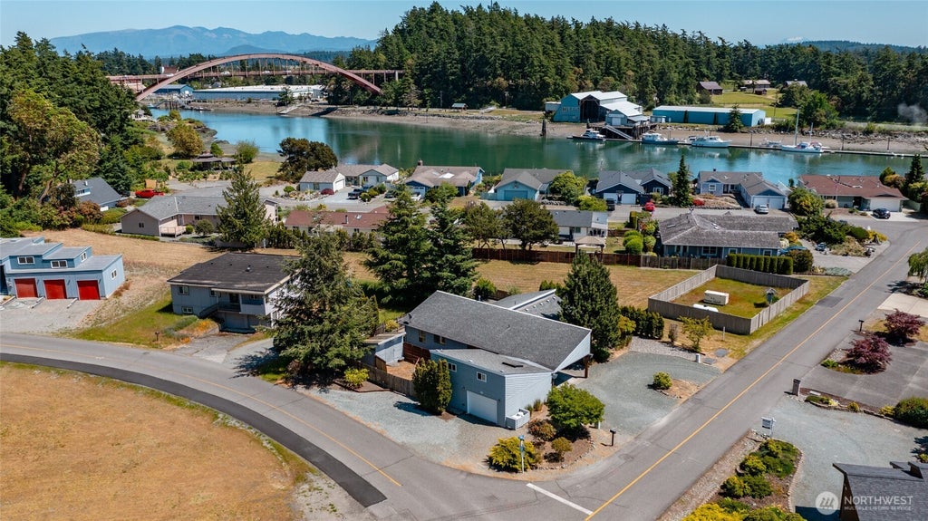 Exceedingly adorable cottage-style home a stone's throw to the channel and Rainbow Bridge. Located on a corner w/designated green spaces, relish 1,404 sq. ft., 2 bds + bonus rm., 1.75 bath, single level/open concept living/dining/kitchen, hardwood floors, bedroom w/ensuite 3/4 bath, laundry room/full bath, floor to wall windows in the corner bedroom w/ access to the fully-fenced yard w/hot tub. The flexibility to work from home in the detached garage with a designated & private office space. Live the dream and embrace the exclusive Shelter Bay experience while being minutes to the endearing waterfront town of La Conner. This home will make you feel like you are on vacation everyday w/ seasonal sunshine & a permanent rainbow out your window.