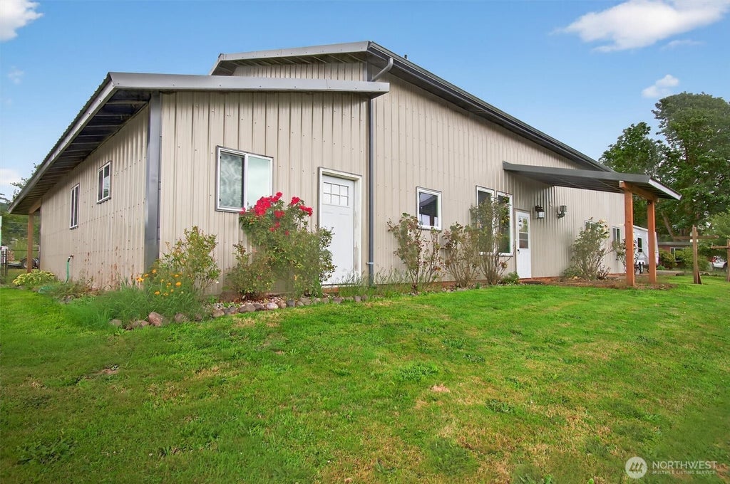 Car, hunting and fishing; outdoor enthusiasts, this tastefully done shop house, is the last house on a dead end road, fenced and ideal for entertaining. Shop has power RV size garage doors, Blaze King wood stove, shudders over each window, custom spiral stairs lead up to a loft/storage area and bathroom. Inside the living space you will find an open concept design, stainless steel appliances, large loft bedroom, recessed lighting, over-sized ceiling fan, a bathroom/laundry combo. Off the back side there is an additional unfinished area, with an in progress walk in freezer/canning area. A carport extends the length of the structure, full RV hookups or for up to 3 vehicles. a horseshoe pit, fruit trees, lawn tools shed. Estate: sold As Is