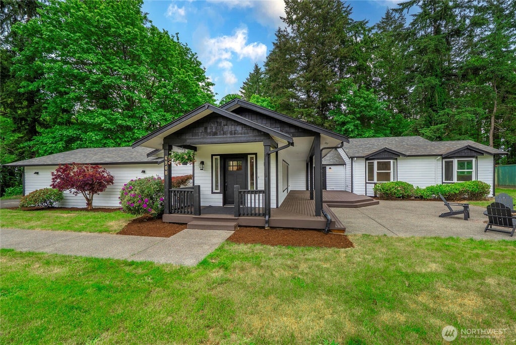 Discover your private oasis in this stunning Midland rambler, set on a serene .81-acre lot at the end of a quiet road. Spanning 2,698 sq. ft., this 3-bedroom, 2.5-bathroom home radiates charm and sophistication. Bathed in natural light, the gourmet kitchen dazzles with a spacious island, ample cabinetry, and unique accents—perfect for culinary enthusiasts. The luxurious primary suite offers a massive walk-in closet and a spa-like bathroom with dual sinks. Enjoy outdoor living on wrap-around decks and a patio, ideal for relaxation or entertaining. A 2-car garage with a workbench and a vast lot provide endless possibilities to create your dream space. Conveniently located near 512 and I-5, this home blends seclusion with accessibility.