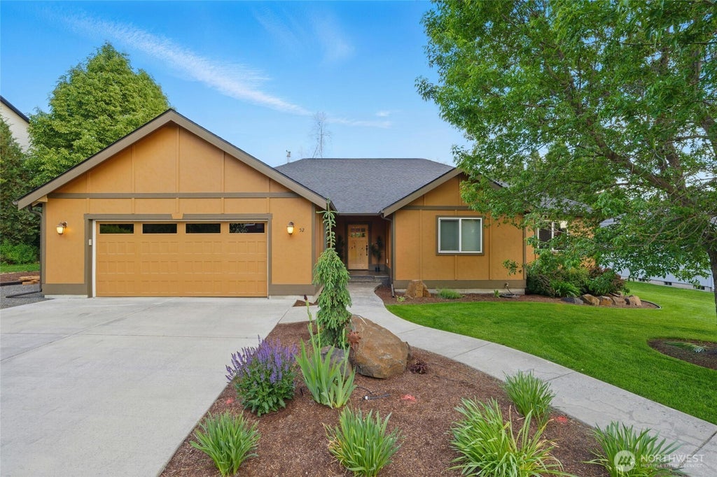 Beautiful custom home with seasonal views of the Blue Mountains and Russell Creek! South-facing windows fill the home with natural light and showcase tree-lined scenery. Enjoy the views from the covered patio, perfect for coffee or al fresco dining. Inside, rustic charm meets modern comfort, featuring a vaulted ceiling, stone fireplace, knotty alder woodwork, and a warm color palette. The open floor plan flows seamlessly for entertaining or everyday living. The primary ensuite is a private retreat with granite double vanity, tiled shower, laundry access, walk-in closet and access to your private outdoor hot tub! Located in a serene, scenic setting that feels worlds away – yet close to everything. It’s time to start living your dream!