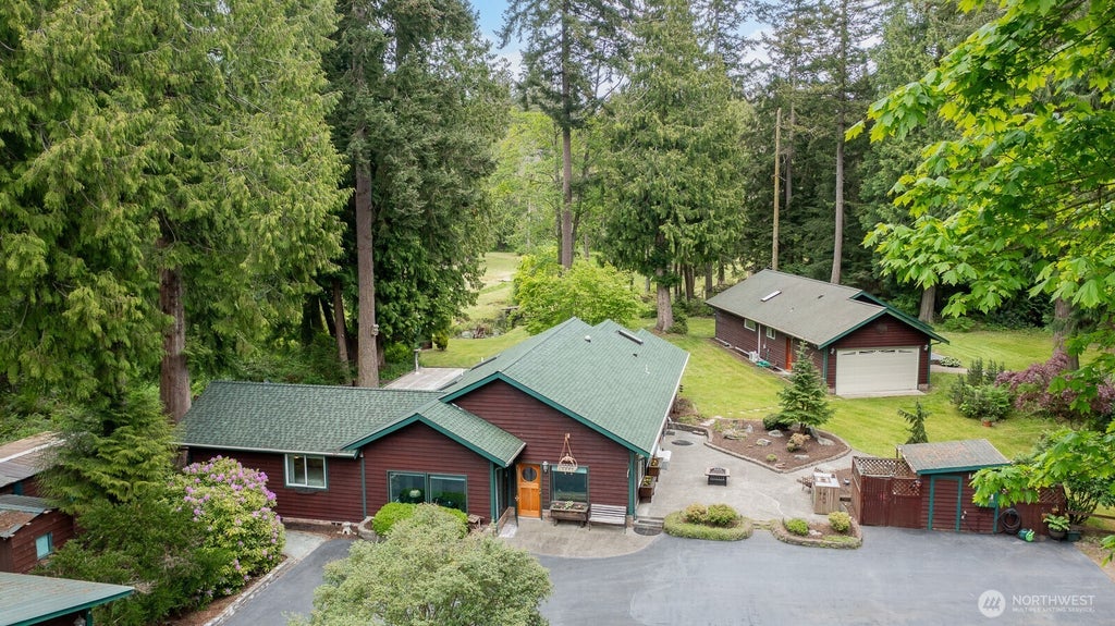 CUSTOM BUILT Rambler + COTTAGE (DADU) on picturesque, shy 10 ACRES! Original Owners. Lots of love poured into this idyllic sanctuary on Camano Island's NORTH END. Parked out, sunny 5-acre nature preserve w/trails, water features, outbuildings & wildlife. PRIMARY HOME: 2,090 SF, 2BD/2BA w/tons of windows, huge entertaining patio + BBQ zone, new quartz counters, new flooring throughout w/radiant heat & insta-hot water in Master suite, heat pump (A/C!), 40yr roof, Leaf Filter gutters, pro exterior stain on both homes. COTTAGE (DADU): 1,040 SF, 1BD/1FULL BA. Bright & open w/LVP flooring, heat pump, newer appliances. Perfect Rental $$ or Guesthouse! Big workshop, 2-car/1-car garages, RV slip, yard equip/boat storage...15min to I-5 & NO FERRY!