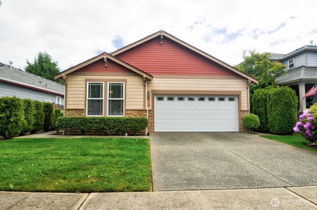 Home features a dramatic entry w hdwd flrs flowing from entry into expansive grt rm w vltd ceilngs, artwork nooks, gas fp accented w tile surround & lots of windows. Upgraded grmt ktchn w granite cntrs & SS appliances, breakfast bar & just off the breakfast nook is a slider opening onto a private courtyard accented w custom paver courtyard. Light & bright primary suite w vltd clings, large primary bath & huge walk in closet w built-in closet organizers. This double primary plan which has a large bdrm at the front of the home w private bath so a perfect guest room or den. Home is impeccably maintained, painted garage floor, & home is located close to the Chehalis Western trail, neighborhood parks, schools, shopping, JBLM and freeway access.
