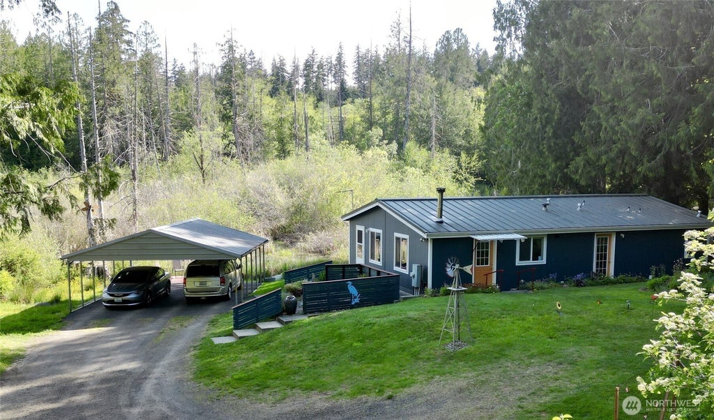 Escape to the country with this immaculately maintained, energy-efficient home offering over 1,200 sqft on nearly 2 private acres. Featuring beautifully designed landscaping, covered carport and storage/workshop. Prime location with multiple parks and trailheads nearby and just 10 minutes from town yet very private. Central Kitsap which is an award-winning school district. Enjoy year-round sunshine in a truly 1 of a kind peaceful setting with fruit trees, thriving wildlife, numerous birds, and baby ducks every spring. A rare mix of privacy, nature, and convenience—don’t miss this serene retreat!