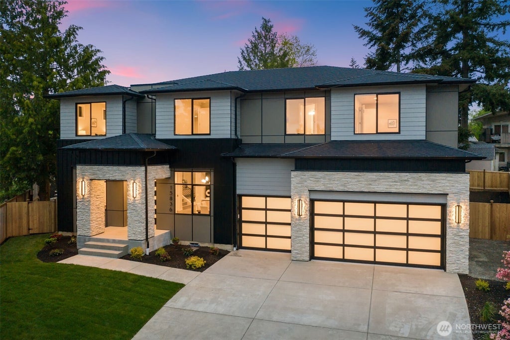 Experience luxury living in this newly completed NW contemporary home by premier Bellevue builder Exceptional Northwest Homes. Thoughtfully designed with high-end finishes and smart features, this home is nestled on a large, quiet lot in a cul-de-sac with easy access to top-rated Bellevue schools, parks, shopping, and trails. The open floor plan includes a main floor guest suite, chef’s kitchen, soaring two-story great room, and covered outdoor living with a gas fireplace. Highlights include full wood custom cabinetry, epoxy, heated tile floors, built-in speakers, and designer fixtures. Green features such as solar panels and upgraded insulation enhance efficiency. This unique home blends style, comfort, and sustainability. Don't miss out!