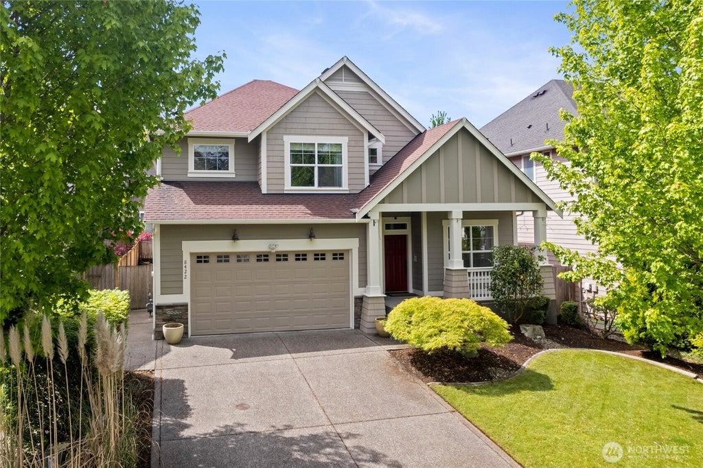 Spacious 5 bed/2.5 bath home is packed with exceptional craftsmanship and thoughtful design! You'll love the open concept kitchen boasting stainless appliances, quartz counter tops, & large island that opens to the living room with a cozy gas fireplace. So much attention to detail throughout with hardwood floors, crown-molding, and high, coved ceilings creating an elegant living space. Upstairs you'll find a luxurious primary bedroom with 5-piece bath & walk-in closet and 4 additional bedrooms plus large bonus space. Outside, a beautifully landscaped yard w/sprinkler system complete the package! Home is situated on a quiet cul de sac w/quick access to amenities. The three car garage offers ample storage & is wired for a generator.