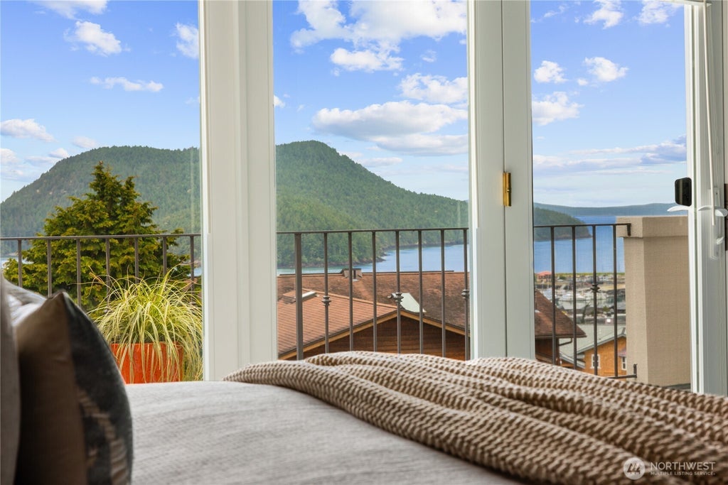 Experience luxury living in this breathtaking water and mt view home. From the moment you arrive, the custom glass panel entry and elegant French glass doors exude timeless curb appeal. Updated interior shines with a custom-designed kitchen featuring sleek SS appliances, elegant countertops, and open space for entertaining. The spacious primary suite offers a peaceful retreat with stunning water views, a walk-in closet, and a luxurious en-suite bathroom. Full lower level can be used for MIL suite or office with separate private entrance and patio. Don't miss the Skyline community amenities- Pickle ball, tennis courts, playground, community beach, waterfront cabana- This home has all the PNW amenities to create your dream getaway.