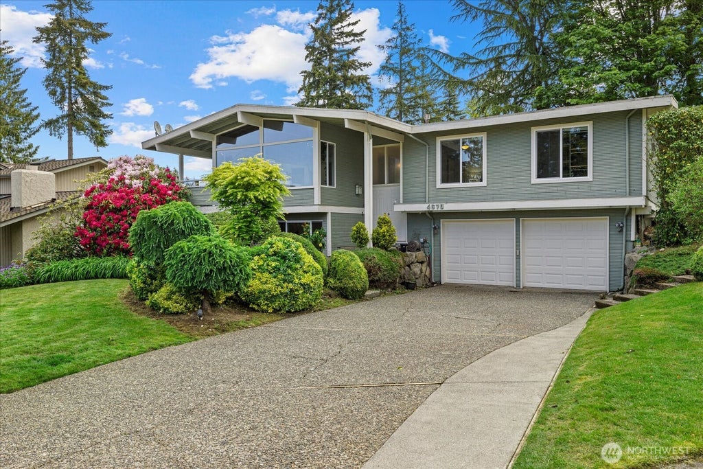 Tucked away on a quiet cul-de-sac in Bellevue’s sought-after Eastgate neighborhood, this beautifully updated home offers comfort and modern style. The light-filled living room features vaulted ceilings. Chef’s kitchen boasts SS appliances, Wolf gas range, soft-close cabinetry, Miele warming drawer, and tigerwood floors. Spacious primary suite with walk-in closet is your private retreat, complemented by an additional guest room.Lower level includes a soundproof media room, dual-pane windows, a bedroom, and a den—ideal for MIL rental. Fully fenced yard with deck is perfect for summer BBQs. New carpet, fresh interior paint, whole-home audio with built-in speakers. Top-rated Bellevue schools and easy access to I-90. Move-in ready!