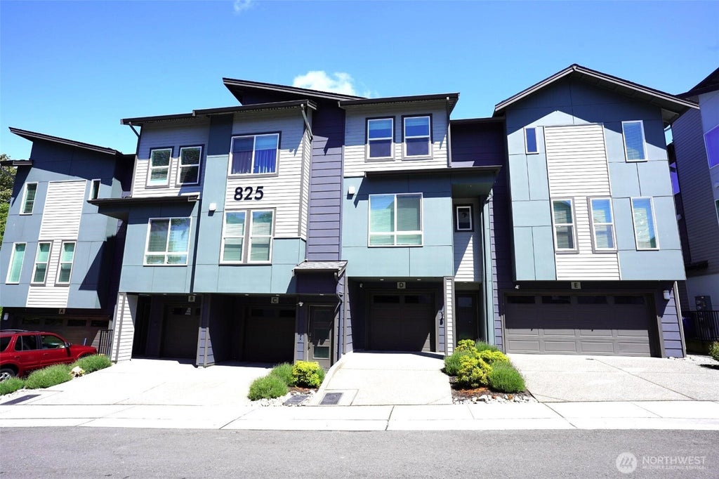 Discover elegant living in these upgraded townhomes, nestled in a peaceful community with walking trails and protected native growth. Enjoy high ceilings and an open living room that flows to spacious deck-perfect for BBQs. The designer kitchen features 2-tone cabinets, quartz counters, and stainless new appliances. Upstairs, both beds offer ensuite baths, including a luxurious primary with dual vanities and tiled shower. Smart Home features, soundproofing, surround sound wiring, EV charging and high-speed internet add modern convenience. Upgrades include new A/C, lighting, fans in all rooms, smart lock, Ring doorbell, Ring garage camera, Brilliant Home Automation panel and garage door . Near top-rated Northshore Schools.