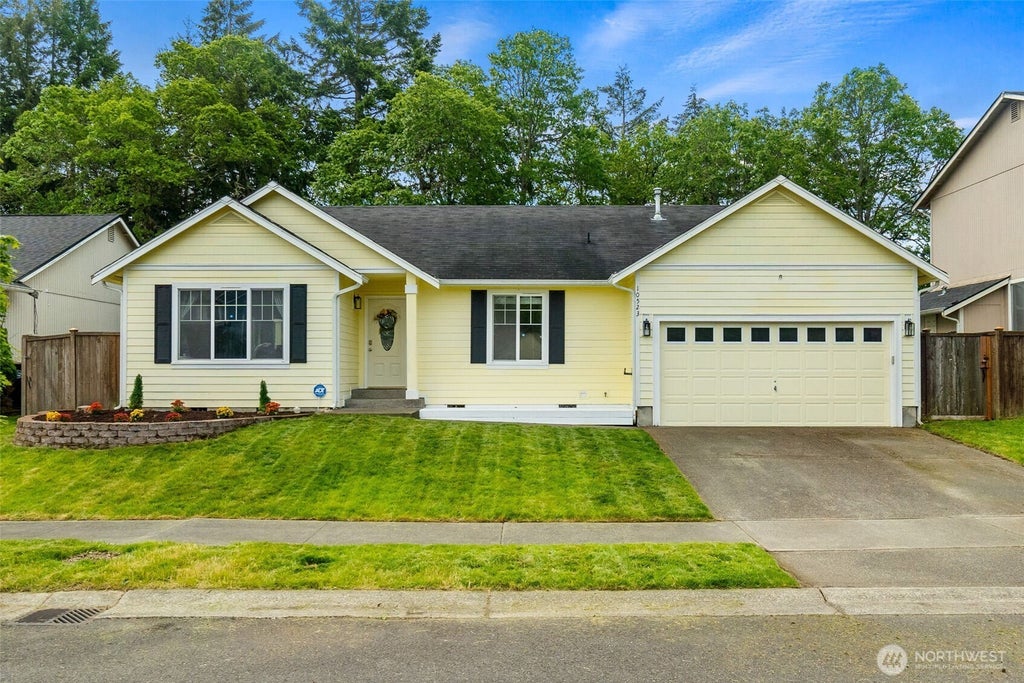 The search for an affordable move-in-ready home on a quiet cul-de-sac moments from the hub of Yelm, playgrounds, restaurants, golf, & easy commute to JBLM is over. This adorable rambler greets you w/ a gas fireplace, high vaulted ceilings, a wide-open great room concept & newer LVP flooring throughout. The 3 bedrooms are generous in size w/ new ceiling fans & a walk-in closet in one of the guest rooms. The large primary bedroom is tucked away for privacy & includes a walk-in closet & en-suite w/ double vanities. Dedicated laundry conveniently located off the garage. The oversized & sun drenched backyard is a wonderful backdrop for entertaining/relaxing on the huge covered deck. Yelm-Tenino Trail behind home. 3.125% Assumable loan potential!
