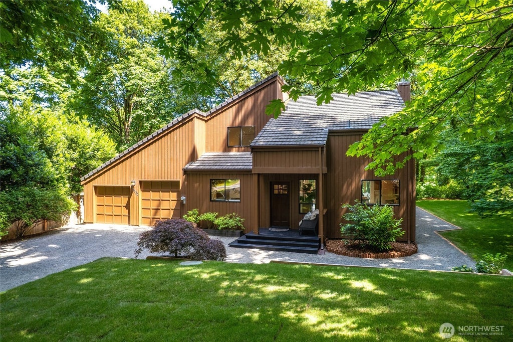 Tucked beneath a canopy of lush green trees, this storybook lakeside home offers 40 feet of Lake Fenwick shoreline and a setting that feels like a hidden retreat. A winding backyard path leads to the water’s edge, with a mid-trail deck that floats among the trees. Inside, the heart of the home is a spectacular solarium-style great room with two-story soaring windows that blur the line between indoors and out. The remodeled kitchen features rich wood cabinetry, slab granite, and a bold full-height backsplash. A main floor primary suite takes in tranquil lake views, while the vaulted upstairs loft offers endless flex space for work, play, or retreat. New carpet, refinished hardwoods, slate roof, new septic, and just 1 mile to light rail!