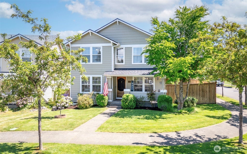 Discover this rare 4-bedroom, 2.5-bath gem in the highly sought-after NW Landing community of DuPont! With 2,040 sqft, this home offers a functional layout featuring an open-concept kitchen with an eat-up bar, formal dining or office space, front room in addition to the main living room, and walk-in laundry. Freshly refinished hardwood floors and a cozy gas fireplace add warmth, while paid-off solar panels keep energy bills as low as $7/month! Enjoy A/C, a 3-car garage, and two backyard spaces—perfect for relaxing or play. A covered back porch and private deck off the primary suite add charm. Community green space is right out front. Minutes from JBLM, restaurants, and schools.