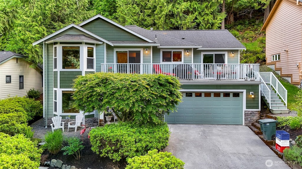 On a quiet loop in Sudden Valley’s sought-after Gate 1 location, this home is just a short walk to Sofield Park & Lake Whatcom access. Enjoy filtered lake views, stunning mature landscaping & a floor plan designed for both comfort & functionality. Vaulted ceilings & a cozy gas fireplace anchor the main living space, while a spacious rec room downstairs offers flexibility for entertaining, hobbies or guests. The dedicated office is perfect for remote work or creative space. Step out onto the expansive front deck and soak in the tranquility of the surroundings. The oversized primary bathroom features a jetted tub, walk-in shower & plenty of room to unwind. Sudden Valley amenities include parks, marina, trails, golf course, pools, gym & more.