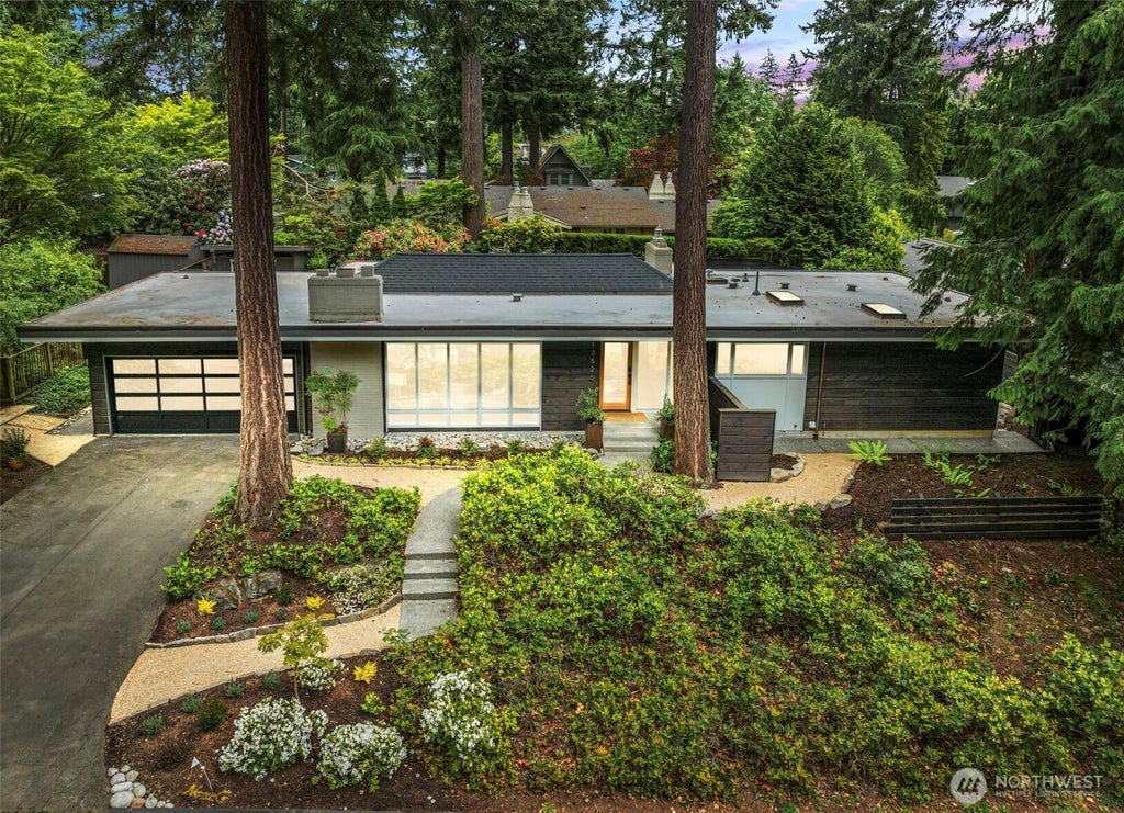 This quintessential mid-century modern home is truly a must see. Nestled on an expansive lot in the Hamlet-like community of Northshire, this home has been meticulously upgraded w/ modern amenities while preserving the original 1960's charm. Stunning sunken living rm w/ floor to ceiling windows, dining rm, chef's kitchen w/ Quartzite stone countertops & Bosch & Miele appliances. Bonus rm w/ French doors & a fireplace lead out to an expansive deck & garden spaces. 3 bdrms on main floor, including the primary on-suite bdrm & guest bthrm. The light filled daylight basement has tall ceilings, rec room, 3rd bth & 4th bdrm. Abundant storage. New electrical/plumbing/gas furnace/AC/roof/paint/refinished oak floors/new glass garage door/new deck.