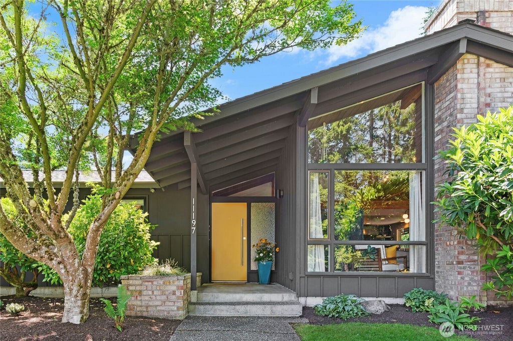 A sunny mid-century gem! Vaulted wood ceilings and expansive windows give light and style to this one-level rambler overlooking the Koura Farm fields. A rare island high point with nearly all day sun, this coveted location is next to Meadowmeer Golf Course and Grand Forest trails. Updates include a modern kitchen and baths, coffee bar, and Brazilian pecan wood floors throughout the open floor plan. Mature landscaping with rhodies, maples, and flowering trees, plus a newly fenced flat yard. A standout feature is the detached Modern Studio, a flexible space for creative hobbies, remote work, or a peaceful retreat. Efficient updates include newer windows, heat pump, and on-demand H20 heater. Easy access to HWY 305 and just 8 minutes to ferry.