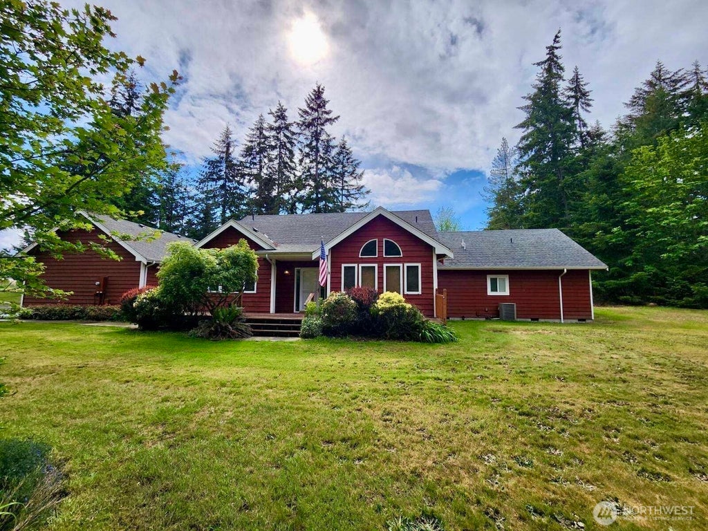 Tucked away in an unbeatable private setting this stunning 1.1 acre level lot offers the perfect blend of peace and space! Whether you want to grow a garden, park your RV and toys, or set up a game of volleyball, there's room for it all. Inside, the home features 2 bedrooms and 1.75 baths, with a spacious, open concept design. The inviting family room boasts vaulted ceilings, a cozy gas fireplace, and seamless access to expansive entertaining decks. The primary suite offers a retreat of its own, complete with French doors leading to the deck. The open kitchen is designed for gather, making hosting effortless. A massive 3 car detached garage provides plenty of storage, plus additional RV parking.