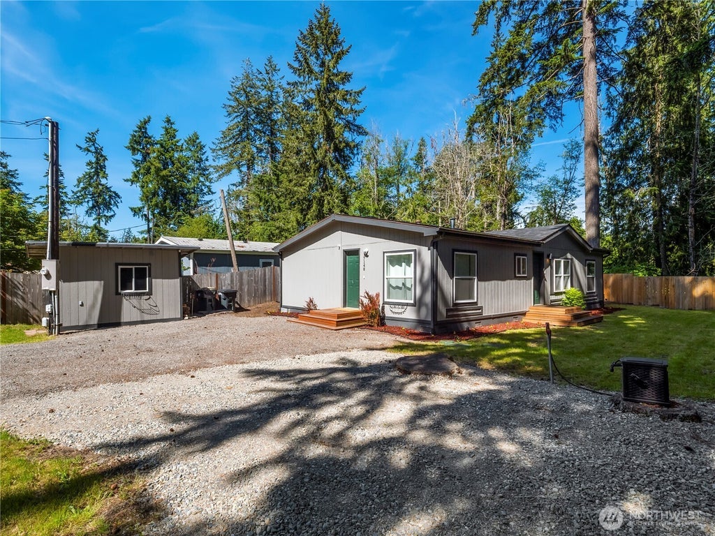 Tucked away in the desirable Nisqually Pines community, this updated one-story home offers peaceful living in a forested setting near the Nisqually River. Inside, you’ll find a comfortable layout featuring a primary suite, cozy woodstove, stainless steel appliances and more. Outside, enjoy a spacious, flat, fully fenced yard, with tons of parking! Plus an outdoor shed for additional storage. The vibrant Nisqually Pines community includes a clubhouse, pool, basketball court, and private river access—perfect for recreation and connection. All this, with an incredibly easy commute to JBLM, Hwy 507 and all of Yelm's great offerings.