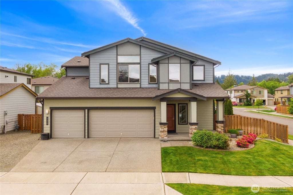 Situated on a premium corner lot, this 4 bed, 2.75 bath home offers the perfect balance of style & functionality. Original owners have added all the bells & whistles & taken great care & pride in ownership. Inside, enjoy low-maintenance LVP flooring, a bright loft & central A/C. Generously sized primary provides a peaceful escape. Main floor bedroom & 3/4 bath. Spacious backyard ideal for entertaining w/ an extended patio, beautiful custom built faux granite rock gas fireplace w/ TV hookup, hot tub, sprinkler system & privacy trees. Have peace of mind during storms, this home is wired for a generator. Wired for 220 volts & fully equipped to support what you need. With thoughtful features throughout, it's ready for you to move in and enjoy!
