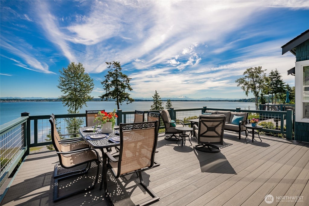 Nestled within a private enclave of 11 waterfront homes, life at Aerie promises a serene & tranquil haven. Revel in the unparalleled, protected waterfront views w/ nearly 671' of pristine frontage. This timeless residence, w/ updates throughout, boasts a casually elegant design featuring vaulted ceilings & main floor living. Primary suite showcases a fully renovated bathroom, while the wrap-around deck, complete w/ covered space, makes for the perfect spot for morning coffee. With 2 ensuite guest rooms on the 2nd story & versatile bonus space in the lower level, w/ direct waterfront access. Well run association makes living at Aerie stress free. Minutes from all that Semiahmoo has to offer & easy access to I-5 & the US/Canadian border.