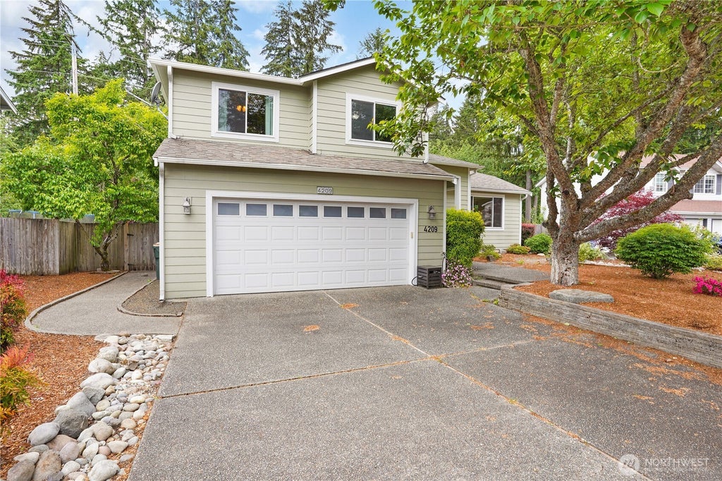 Immaculately maintained split-level home in a serene cul-de-sac! This inviting property features a spacious backyard deck ideal for entertaining. Enjoy access to Long Lake, parks, and play areas in this charming neighborhood. Inside, you'll find fresh flooring, trim, and paint, along with an updated kitchen with new appliances + cabinetry, all new in 2024. The only carpet in the home is placed strategically on the stairs to both levels. Upstairs, you'll find 3 bedrooms and 2 bathrooms, with a primary ensuite. The lower level offers a living room complete with a gas fireplace, mud room, and garage access. Entry level offers another living area, dining area, kitchen, and 1/2 bath! Close to I-5, JBLM, entertainment, nature trails, + more!