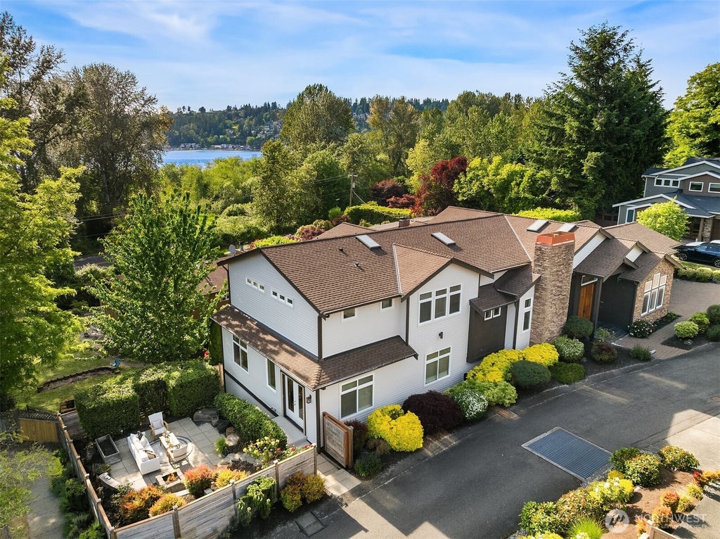 Welcome to this extraordinary showcase home, featuring a quintessential floor plan w/ contemporary design and elegant finishes. The grand entrance leads into a dramatic great room with 20' ceilings, Brazilian hardwood floors, and natural stone on all surfaces. The chef's kitchen boasts professional-grade appliances & seamless access to outdoor living areas. Discover the vaulted master suite, complete with a private deck & a spa-like bath. Multiple yard spaces, perfect for outdoor relaxation and entertaining, along with flexible rooms throughout, ideal for your lifestyle needs. Enjoy stunning lake and mountain views and an unbeatable location, just a short walk to Juanita Beach Park and minutes from 405, DT Kirkland, Redmond, and Bellevue.