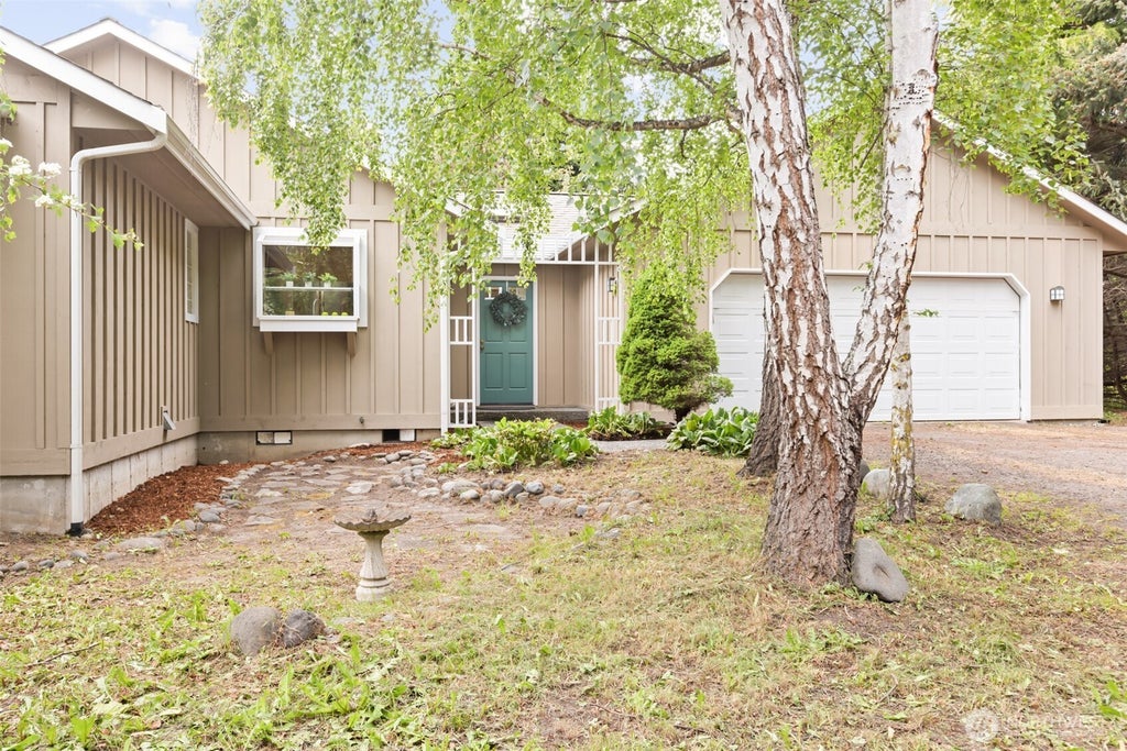1.25-ac southfacing Mt View Retreat. Main floor living! 1 of Sequim Valley’s most sought-after neighborhoods—only 1 home on this street has listed in 5 years! This 2652sf home features vaulted tongue & groove ceilings, hardwood & a striking stone fireplace with rocks from the river. Private setting with no fussy landscaping but beautiful trees dot the property making yard work a breeze. The garden window is a great vantage for birdwatching—finches, hummers & woodpeckers visit the Birch trees, Fig, Apple, Plum, lilac & honeysuckles. All 3 bdrms have walk-in closets & ez access to the 500sf Deck. The lower-level has a private entry for office, creative space or flex rm. New heat pump, Waterheater & appliances 2022! New roof scheduled No HOA