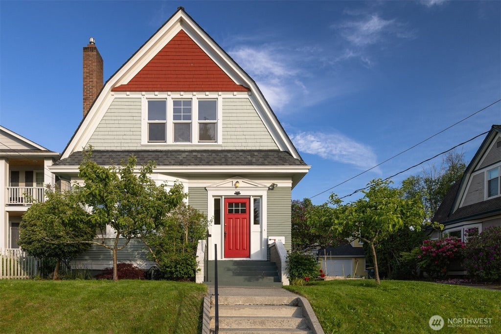Exuding classic charm + infused w/ modern updates, this gorgeous turn-of-the-century colonial home is practically *in* Broadway Park. Main floor feat open layout w/ large living + dining rooms, lovely primary bedroom, 3/4 bath, + sunny kitchen-- all flowing easily into one another. Upstairs you'll find a spacious primary bedroom, full bath, + 2 guest beds, one of which sees Mt Baker over the private backyard patio. Big basement w/ room for storage/projects + a detached 2-car garage w/shop area. Original touches (built-ins, arches, banister, wood floors) have been preserved while offering some updates to wiring, plumbing, windows, exterior paint, + roof. Close to downtown, waterfront, + great schools too. Make this stunning home yours!