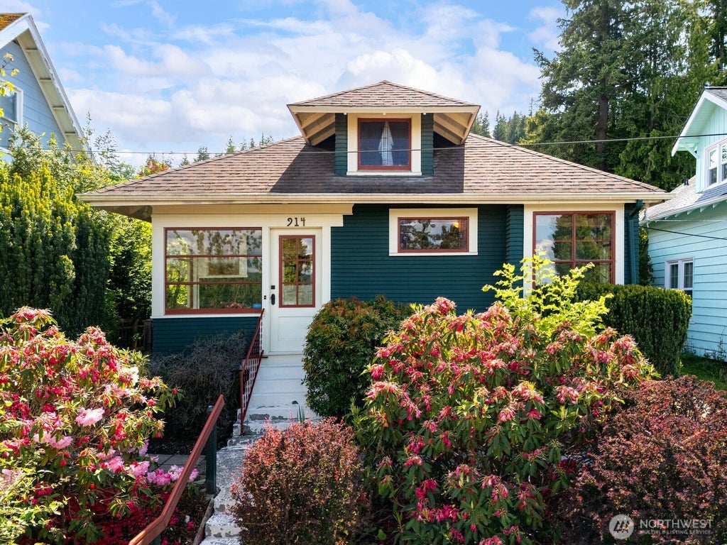 You want cute? Charming? In the heart of Bellingham? Then your opportunity has arrived! Perched on a quiet street on the north side of Sehome Hill, this beautiful home offers both comfort and classic appeal. With the mountains clearly visible over the city on one end of the spacious living room, and the welcoming openness of the kitchen on the other, you'll have an easy time hosting or relaxing. Those rooms are easily accessible from both bedrooms and the full bath, and the huge basement is teeming with possibility. Out back is a serene patio and a big detached garage with shop and storage space. All this just minutes from downtown, I-5, dining, shopping, trails, and all the other activities this town has to offer! Sqft incl 1008' basement.