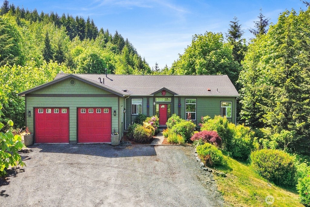 Immerse yourself in this PRIVATE serene 20-Acre Retreat on Chuckanut Mt! This updated light-filled rambler offers 1,812 sf; featuring a spacious open floor plan with 3 bedrooms, 2 full baths, a bonus room, vaulted 9' ceilings and stylish porcelain wood-look flooring. Cozy up by the wood stove and enjoy views of your forested surroundings from every window. You'll also find a chicken coop, fruit trees, and a garden area ready for your homesteading dreams. Beautiful west-facing sunsets. Just minutes from Fairhaven, Lake Padden & Sammish with World-Class Mt. Biking nearby and endless hiking trails steps from your front door. Don't miss this rare opportunity to own 20 acres in a stunning natural setting!