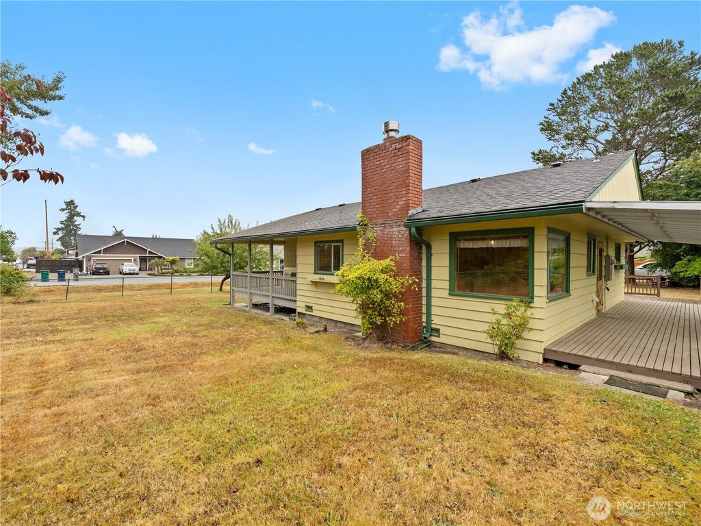 Lovingly cared for vintage mid-century home situated on a huge double lot right in town. Excellent proximity to parks, baseball & soccer fields, playground & Community Forest Land Trail heads. The convenient kitchen, dining and living are perfect for gatherings. Owner's suite enjoys a brand-new bath with tile shower; additional bedroom, bath and living room with access to the deck and yard. 1020 SF detached garage/shop space is insulated with power. Fenced yard, fruit tree and lots of mature plantings in the garden all on shy 15,000 SF lot. Newer roof, leaf guards for gutters, exterior paint, 200-amp power and newly upgraded crawl space. This lot offers so many possibilities for an additional building lot or ADU additions.